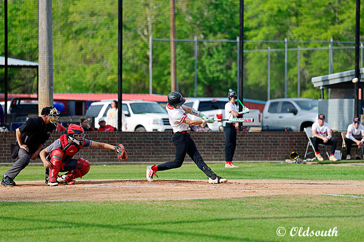 Senior Noah Pearson hammers a 2 run homer in the 2nd in Caldwell's 11-4 district win over Bunkie